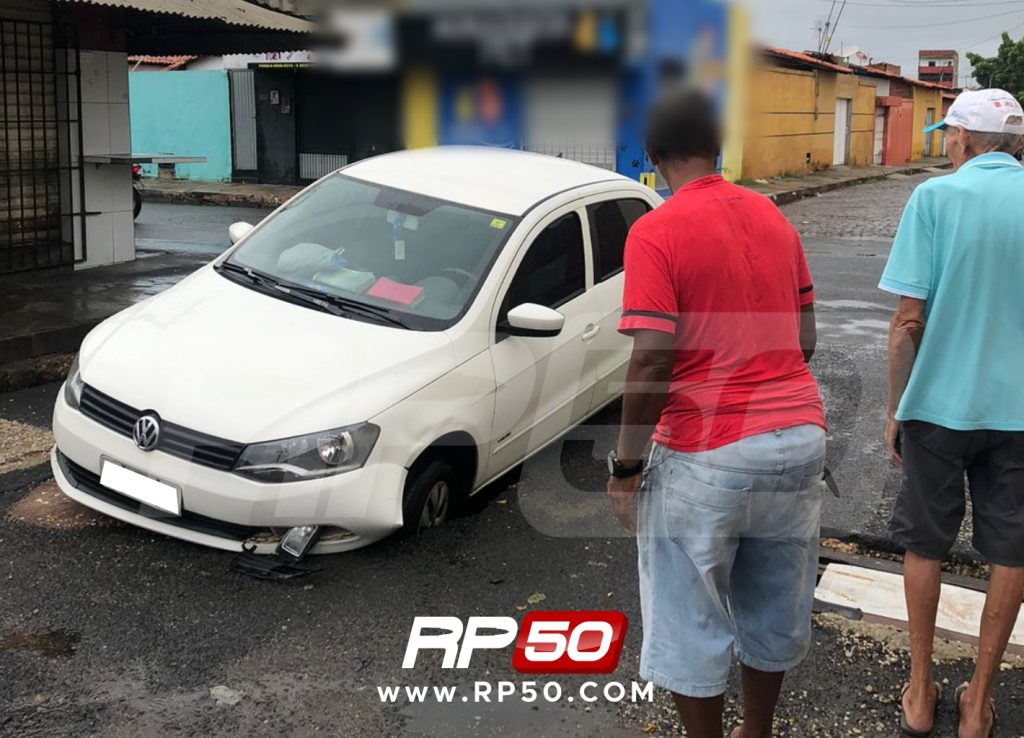 Carro afunda e quebra em galeria no bairro Renascença II