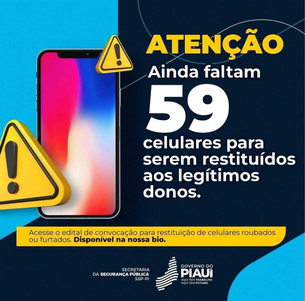 SSP-PI informa que 59 celulares recuperados ainda devem ser devolvidos aos donos; veja o edital