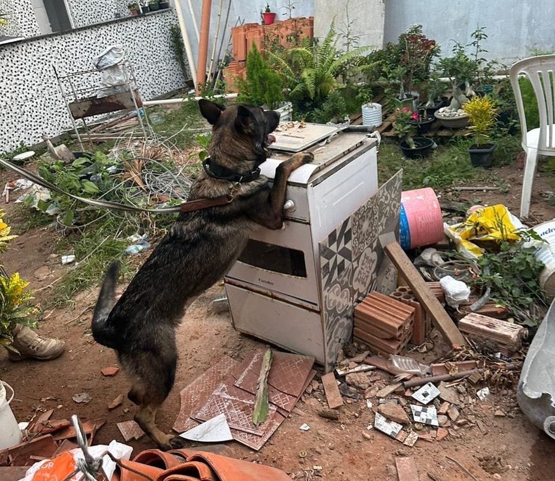 Ressalte-se que as investigações apontaram que a residência estava sendo utilizada para a guarda e distribuição de entorpecentes, e parte destes e o dinheiro estavam em um compartimento oculto (mocó) num balcão da residência, sendo localizados com a colaboração da cadela do Núcleo de Operações com Cães da Polícia Civil.