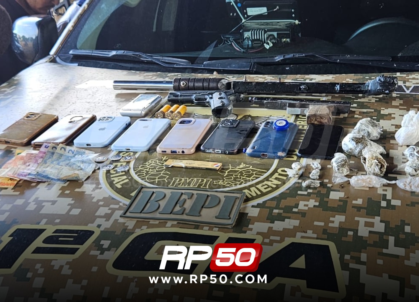 Durante a operação, foram apreendidos oito celulares, armas de fogo, munições, drogas e uma motocicleta roubada. As armas apreendidas incluíam um calibre 20 e um simulacro de calibre 38. Os suspeitos, que se identificaram como integrantes do Bonde dos 40.