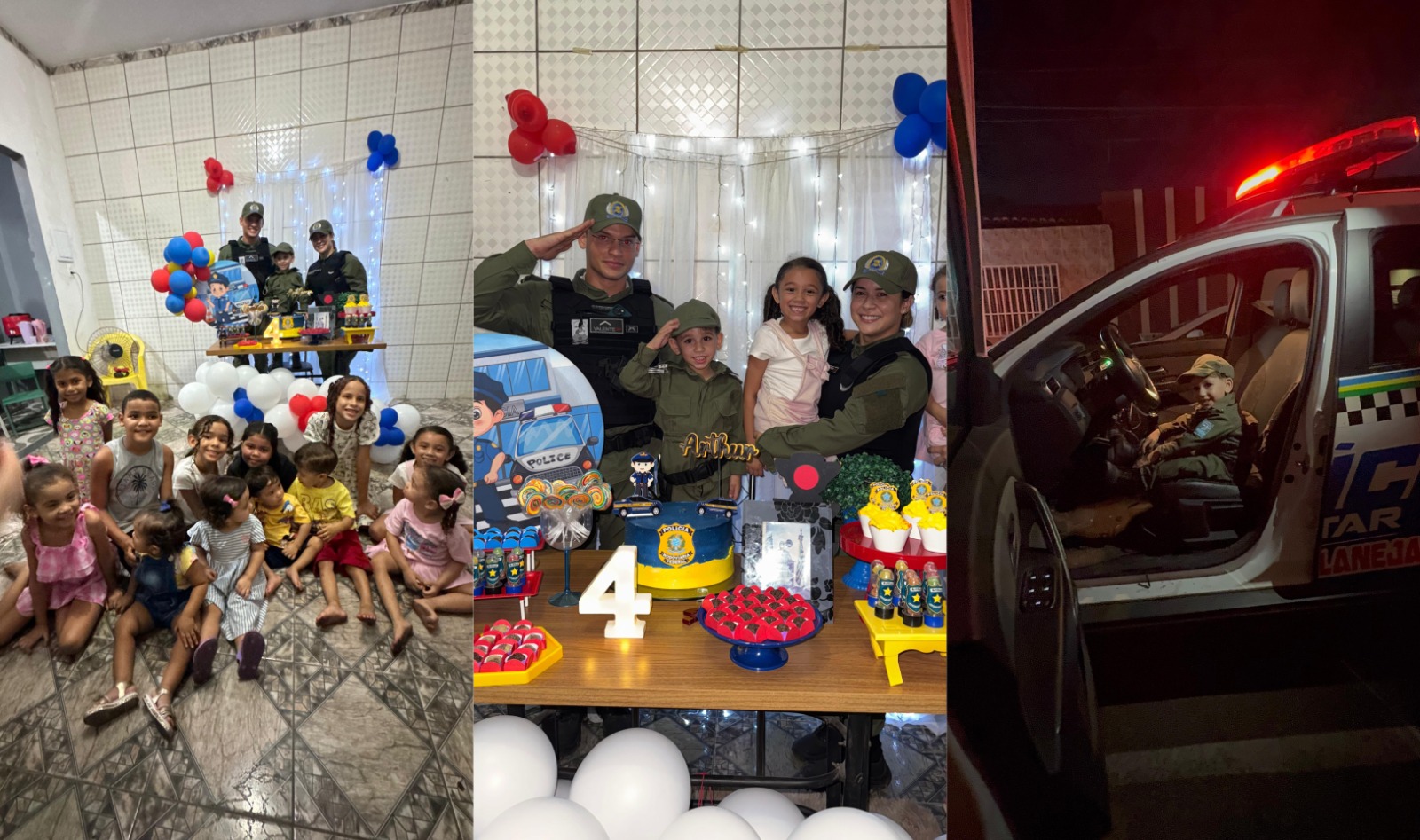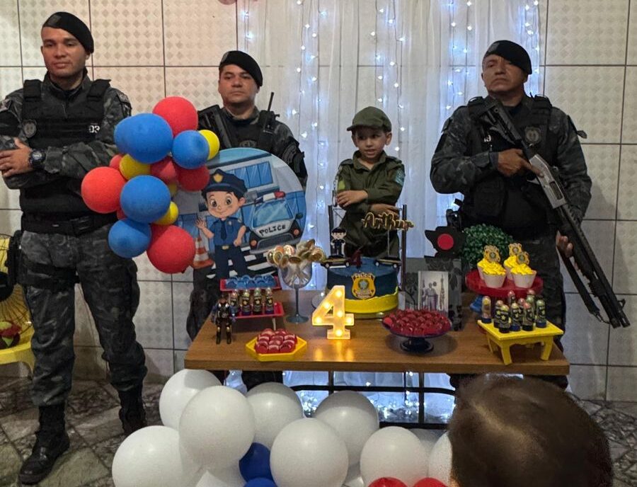 Com o tema policial escolhido para a comemoração, os pais, Lucas Breno e Iara Santos, moradores do bairro Ilhotas, zona Sul da capital, pediram às equipes que participassem da festa. Quando as viaturas chegaram, Arthur correu até os policiais e foi recebido nos braços de uma policial feminina, em um momento que emocionou toda a família.