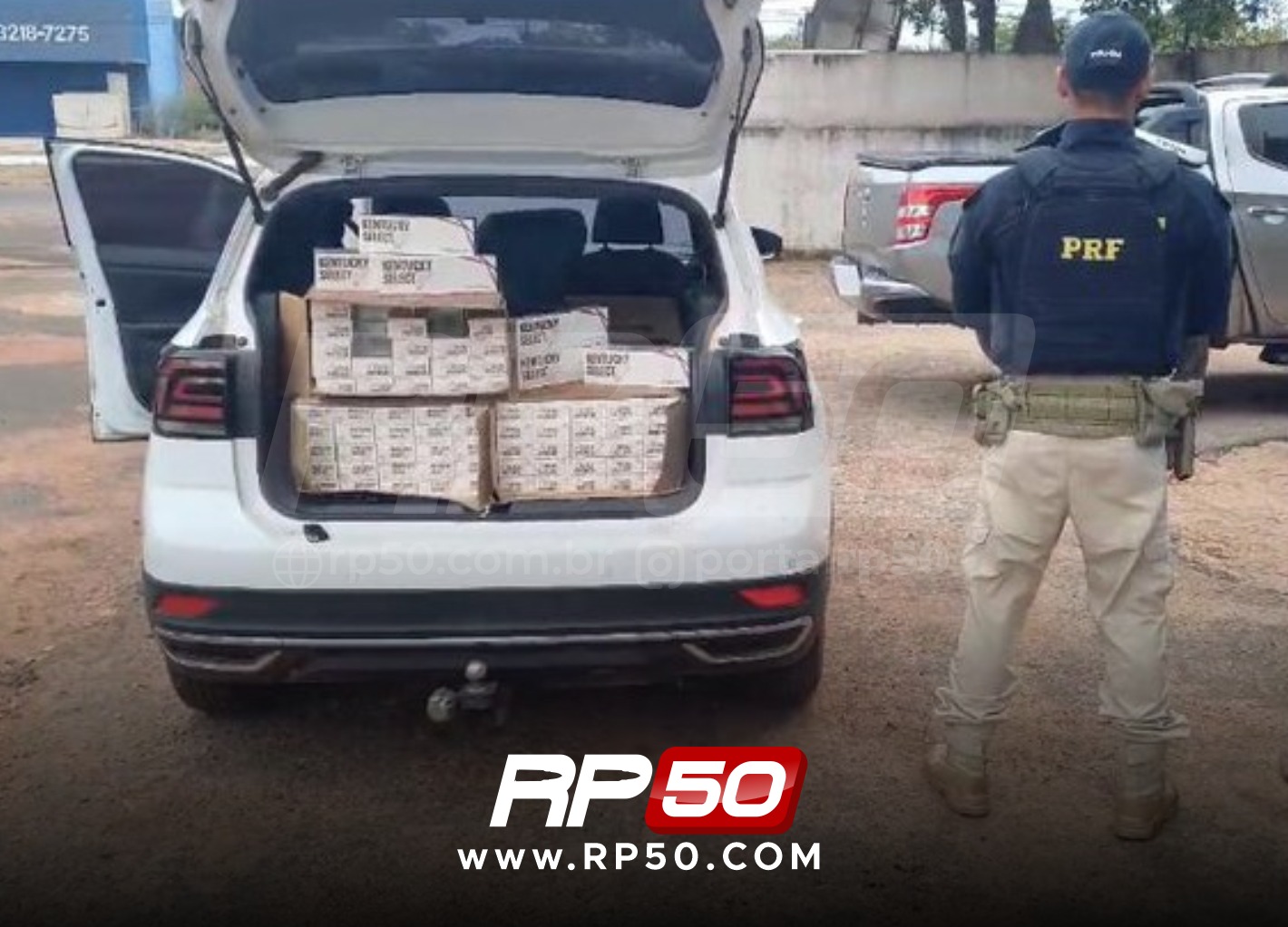 Na ocasião, a equipe da PRF abordou o veículo VW/T-Cross, ocupado por dois homens. Durante a revista, foram encontradas no porta-malas cinco (5) caixas grandes de papelão, contendo 50 pacotes de cigarros cada. Cada pacote possuía 10 maços, e cada maço continha 20 cigarros de origem americana. A carga totalizava 2.500 maços, correspondentes a 50.000 cigarros.