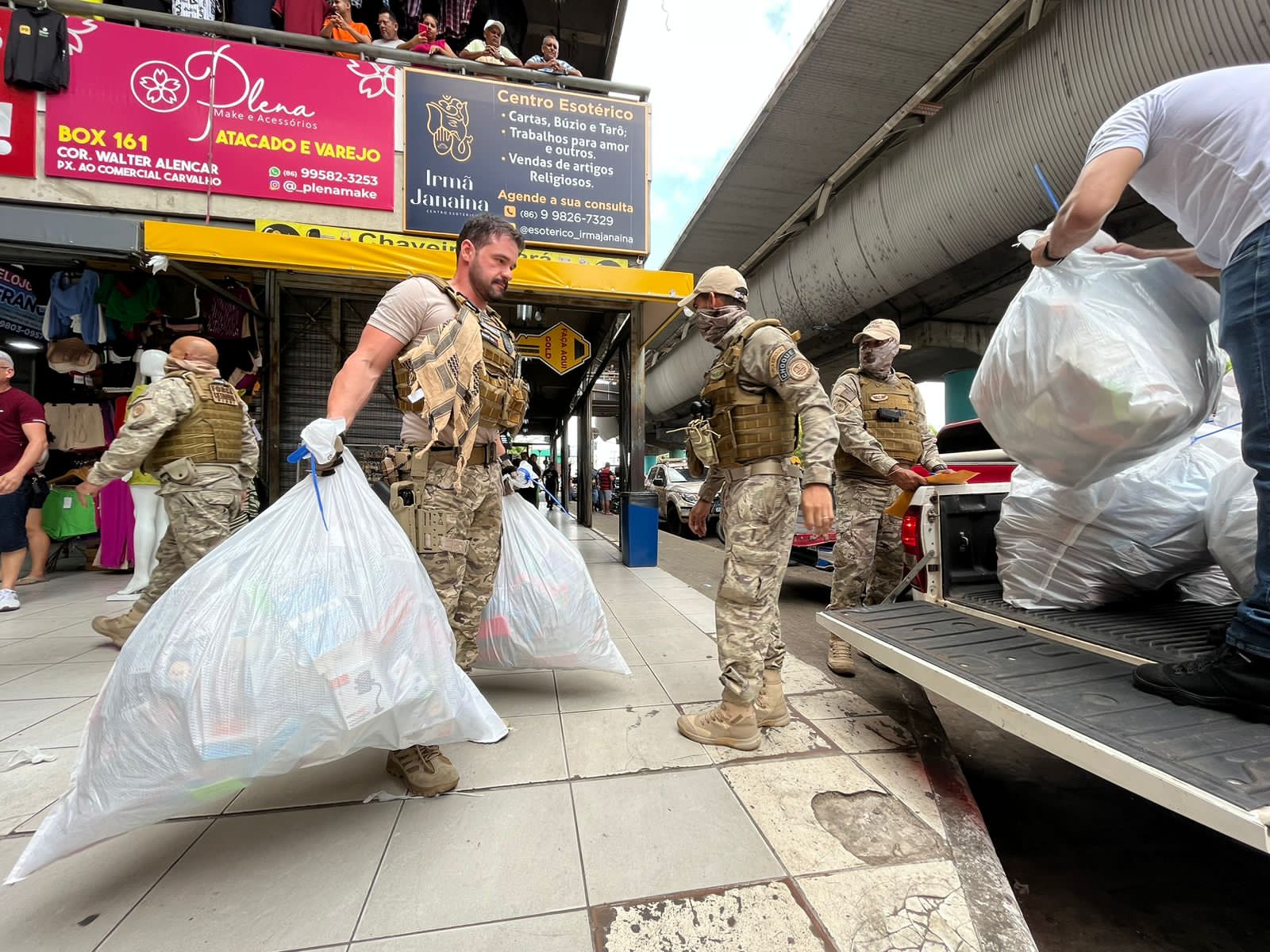 “A Receita Federal como uma instituição pública, zeladora das atividades comerciais lícitas, está sempre presente prestando apoio a Polícia Civil do Estado do Piauí. Especificamente nessa operação nós fizemos a verificação dos objetos expostos à venda nos estabelecimentos comerciais e verificamos que muitos produtos eram contrafeitos, ou seja, eram fabricados sem autorização das marcas e muitos produtos importados eram vendidos de forma irregular”, disse o auditor.